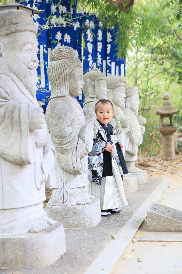 海神社の境内には縁起の良い七福神の石像があります。小さなお子様も遊びながら楽しくお写真がご撮影頂けます。